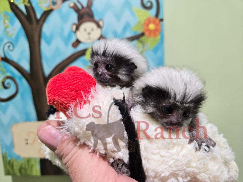 2 baby cotton top tamarins ready to go 12/26/25 NC residents only For more information contact Chuck Bowyer at 910 610 3153 or kcsranchinfo@gmail.com (located in NC ) For more information go to kcsranch.com |